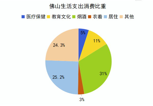 在佛山约4万元的人均年支出中,烟酒消费已经超过31%,烟酒消费似乎成为佛山人生活支出的重头戏,无疑促使佛山成为广东省酒类流通批发及销售的重要基地。