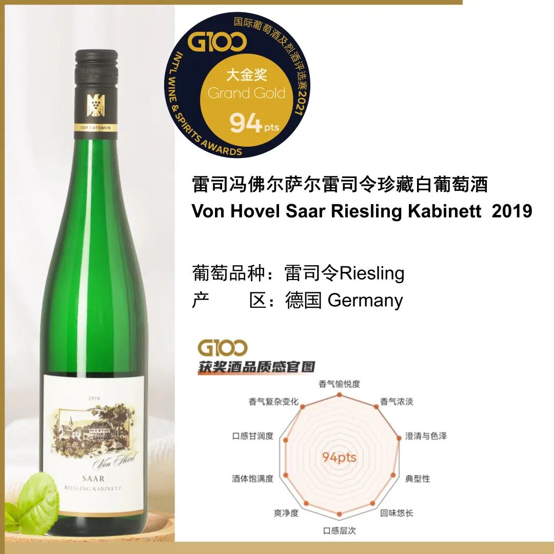 雷司冯佛尔萨尔雷司令珍藏白葡萄酒Von Hovel Saar Riesling Kabinett 2019